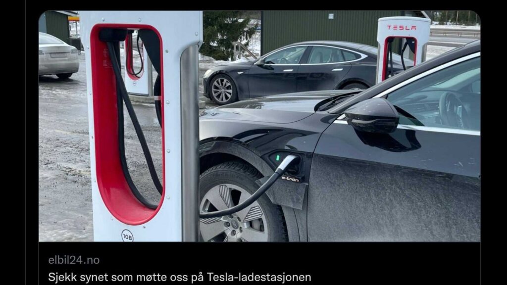 Nonetheless, various non-Tesla EVs were seen charging at the Nebbenes kro Supercharging station in Eidsvoll Municipality, north of Oslo. The video, posted by elbil24.no, shows an Audi e-tron.