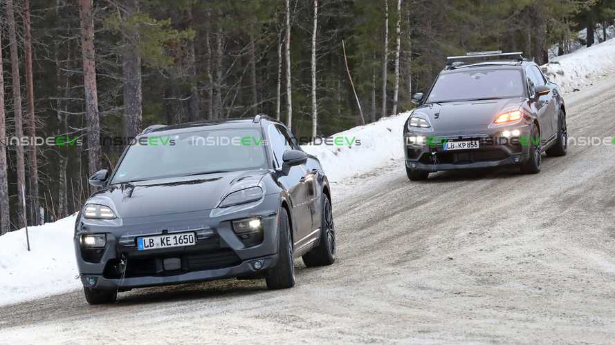 From the side, we can start to see the vehicle’s actual shape. Don’t be fooled by the fake trim that makes the rear side windows look like they have an awkward shape, because the electric Macan will have a rear end very similar to that of the Cayenne Coupe, complete with the spoiler that electrically rises at speed.