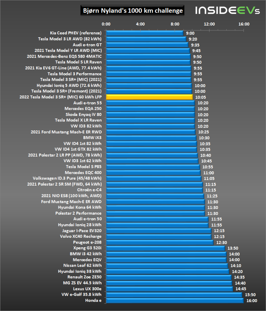 In the most recent 1,000 km challenge, Bjørn Nyland tested the latest Made-in-China (MIC) Tesla Model 3 RWD (former Standard Range Plus/SR+) with about a 60 kWh LFP lithium-ion battery (as recently measured in Bjørn Nyland’s range test).