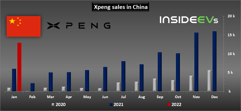 XPeng reports strong EV sales right from the start of 2022, with the fifth consecutive monthly result above 10,000.