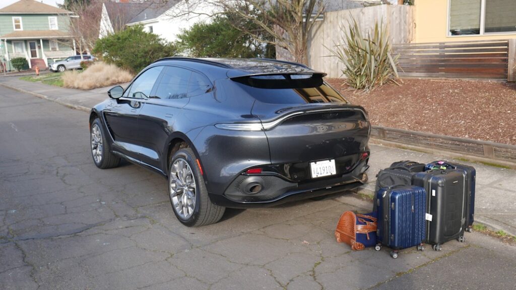 But I’m here to talk cargo capacity, which is officially listed at 22.3 cubic-feet behind the back seat. I can tell you right now that’s deceptive — there’s far more than that would imply. Aston Martin, much like Mercedes-Benz, Porsche and perhaps Land Rover, must be using a different measurement than most in the industry. A capacity of 22.3 cubic-feet would be in the midcompact SUV range, in between a Mazda CX-30 and Kia Seltos. I can definitively say it has more space than those. In fact, it has more space than compact luxury SUVs like the Genesis GV70, which is listed at 28.9. I would not be surprised if it would be in the low 30s if Aston Martin used a different measurement.