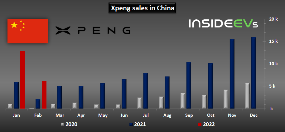 XPeng announced that in February, its electric car sales increased by 180% year-over-year to 6,225.
