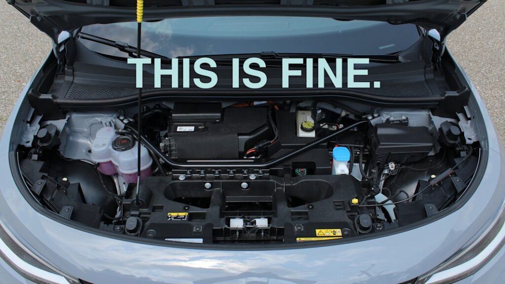 Still, frunks are largely inconvenient. First of all, you usually have to open them from inside the car. Some vehicles smartly allow you to open it with the key fob — or with the Porsche Taycan’s “Comfort Access” feature, with a simple swipe gesture. With the aforementioned Mach-E, you have to reach down in the driver’s footwell, pull the hood lever twice, then get out and lift the hood, just like you would to check your oil in Mustang 5.0. Another downside, frunks don’t enjoy the same climate-controlled environment as your rear cargo area. Can you imagine what any leftover shrimp would smell like after a long drive home from the football stadium on a hot day?