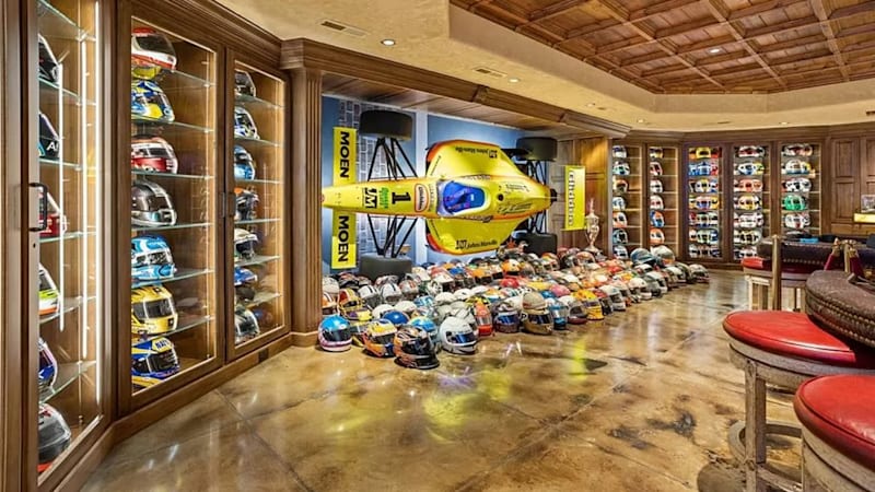 Stewart’s love for racing is evident in the photos of his house. Dozens of racing helmets and a real IndyCar are displayed in the room that the bar is in. We’re guessing that none of it is included in the sale, unless you make a really good offer, but at least the hardware is there. Finding a house that you can display a race car in is easier said than done. There’s also a large workshop and four garage spaces.
