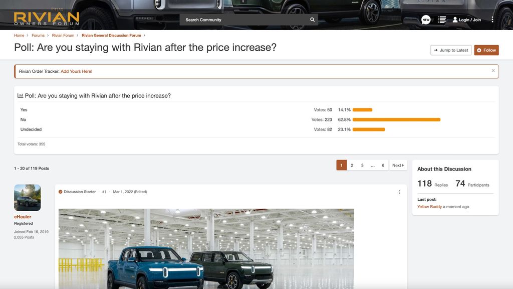Some forum members seem to believe there’s more to the price increases than the reasons cited by Rivian, namely that the EVs were priced too low to begin with to attract orders. Their sentiments are echoed by former Rivian executive Laura Schwab.