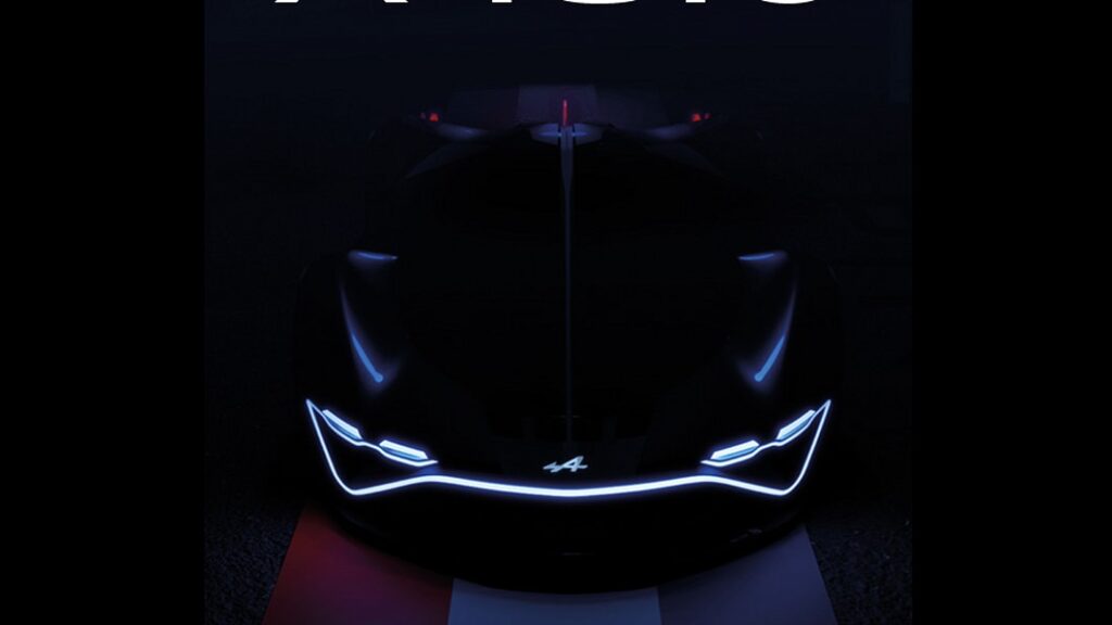 Beyond that, we can see bulging wheel arches front and rear, a fighter jet canopy-style greenhouse and taillights that appear to extend from the rear bodywork. Oh, and the Alpine logo on the nose glows, too.