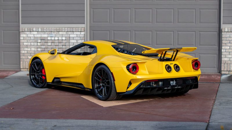Delivered new to Suburban Ford in Sandy, Oregon, this electrifying 2020 Ford GT was produced with a Triple Yellow Tri Coat exterior finish with Shadow Black overtop stripes complemented by gloss exposed carbon fiber 20-inch wheels, options that added $37,500 to the GT’s $509,200 MSRP. Add another $1,250 for red-painted brake calipers, $250 for a leather-wrapped steering wheel and an additional $30,000 for the Dark Energy interior upgrade package, and one is left with the most technologically advanced, stunningly capable and beautiful automobile ever to wear the Blue Oval.