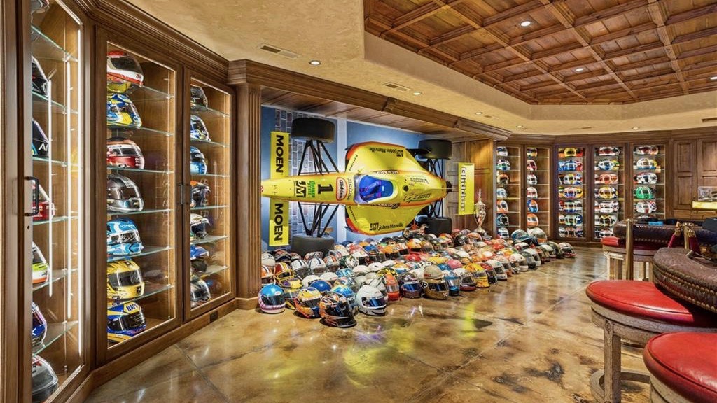 Stewart does have an old IndyCar mounted on the wall in one room, surrounded by his collection of helmets. Those items probably aren’t included in the sale.