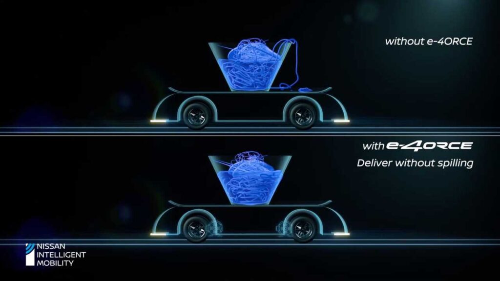 Nissan says the e-4ORCE precision control technology and twin electric motors are fine-tuned to provide “unparalleled ride comfort for all vehicle occupants.“
