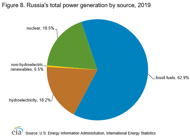 According to the US Energy Information Administration, Russia’s total power generation, as of 2019, broke down as follows: