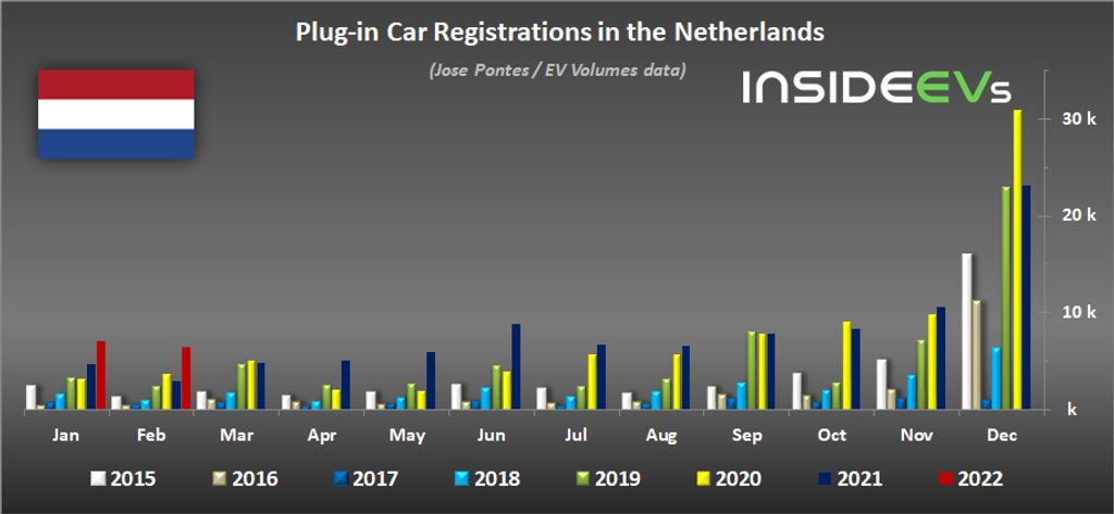 In February, some 22,860 new passenger cars were registered in the Netherlands, which is 5.8% more than a year ago. At the same time, plug-in car sales surged.