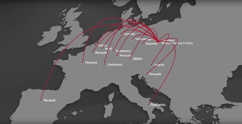 The video includes also a map of where the batteries are exported. As we can see, LGES batteries are used by a pretty high number of manufacturers, including Audi, BMW, Daimler, Jaguar, Porsche, Renault, Stellantis, Volkswagen and Volvo: