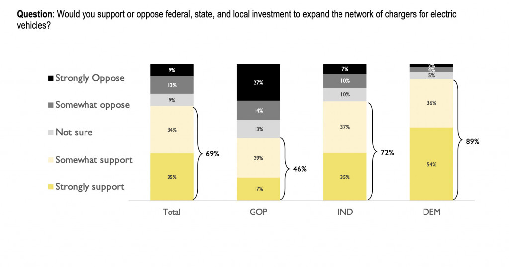 The poll, which gathered responses last month, found that there is widespread bipartisan support for what it terms “smart policies designed to increase the adoption of electric vehicles.” According to ZETA, 79% of voters support consumer incentives that would help reduce the purchase price of EVs and 69% of voters would support federal, state, and local investments in EV charging infrastructure.