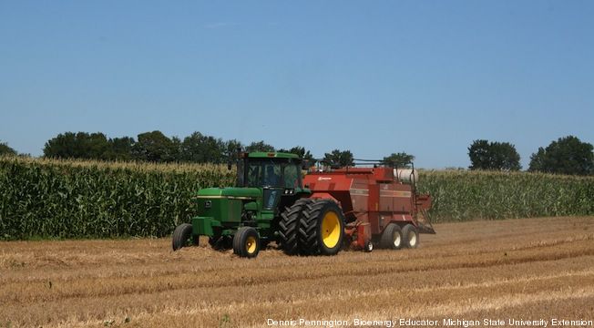 Big square baler harvesting wheat straw for production of cellulosic ethanol