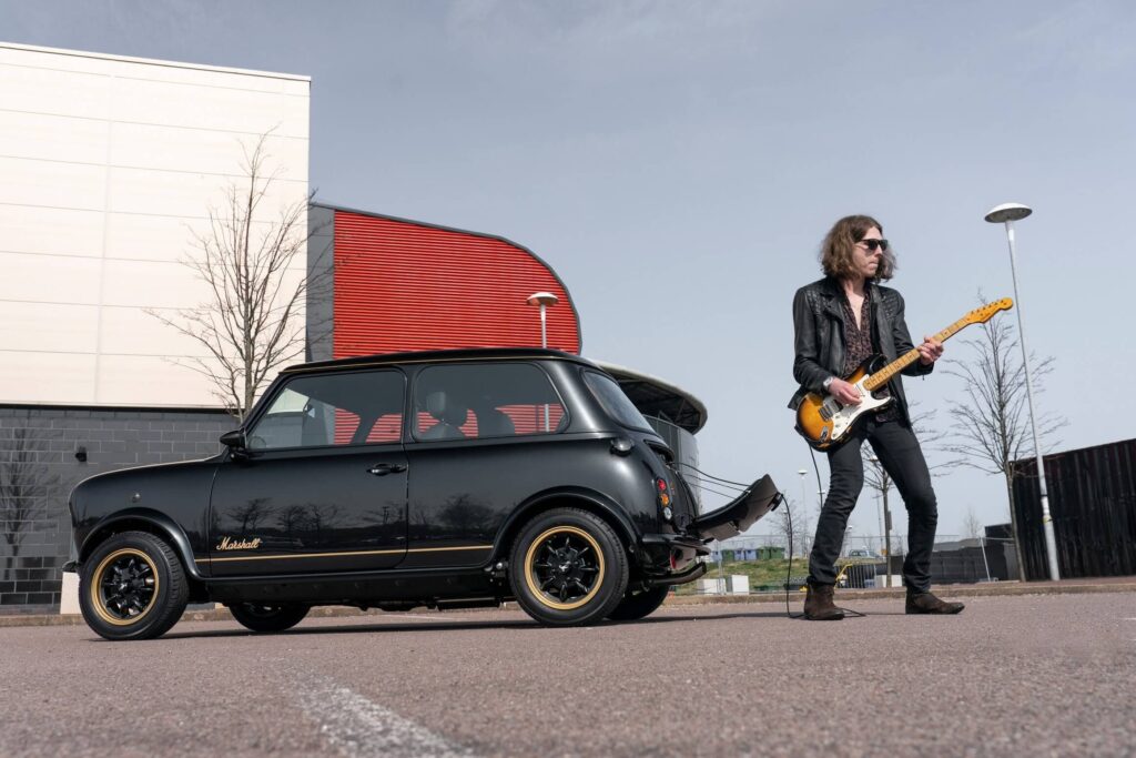 The bespoke amp sitting in the leather-lined cargo area is only part of the restomod as the tiny hatchback boasts other tweaks. The Marshall Edition will wear an exclusive Marshall Black paint contrasted by Marshall Gold accents. The striking shade is evident on the mesh front grille designed to mimic the front of Marshall’s audio equipment.