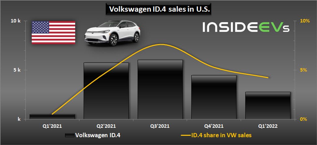 In Q1, the company delivered 2,755 all-electric Volkswagen ID.4 (4.2% of the total volume), which is 481% more than a year ago, although we must remember that it was the start of sales (474 units). A more appropriate figure is the decrease of ID.4 sales quarter-over-quarter.
