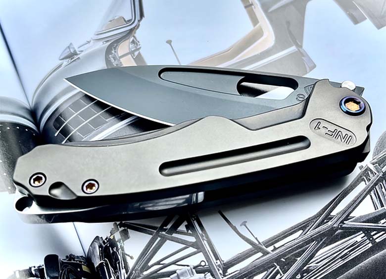 With a design that embodies characteristics from outside luxury influences, The Medford Guy is proud to showcase the Infraction as an automotive-inspired addition to its comfortable compact knife lineup. The Infraction’s lightweight PVD titanium handle is inspired by the lines and curves of the world’s finest sports cars, featuring iridescent flamed hardware and a matching pocket clip.