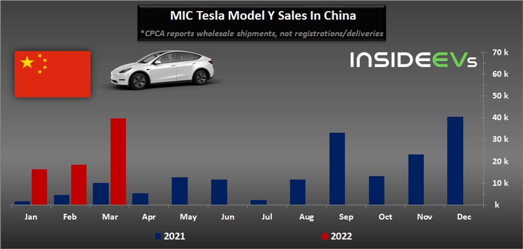 More detailed data, shared by Chinese media, including CnEVPost, reveals that the Tesla Model Y retail sales in China amounted to 39,730 in March (up 291% year-over-year and near-record) and 74,681 in Q1.