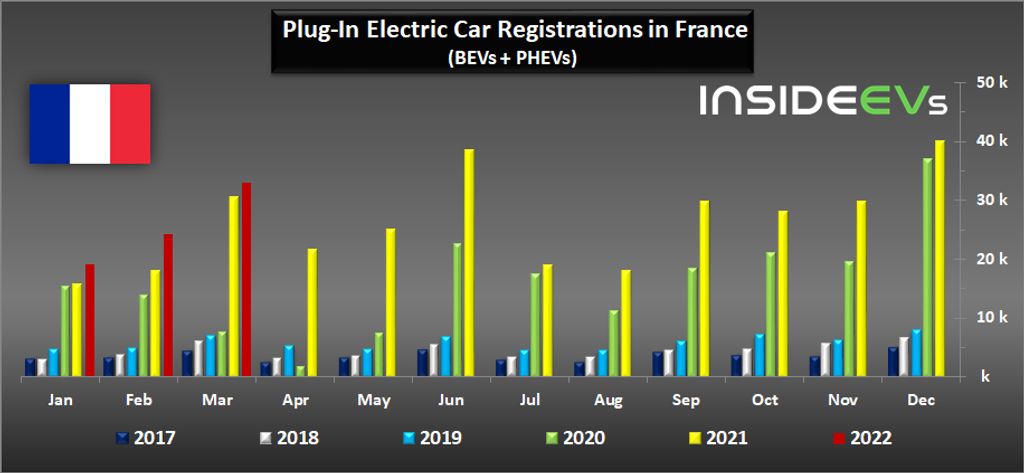 Plug-in electric car sales still increased, but slower than before. According to L’Avere-France, last month, some 32,900 plug-in vehicles were registered (up 7% year-over-year).