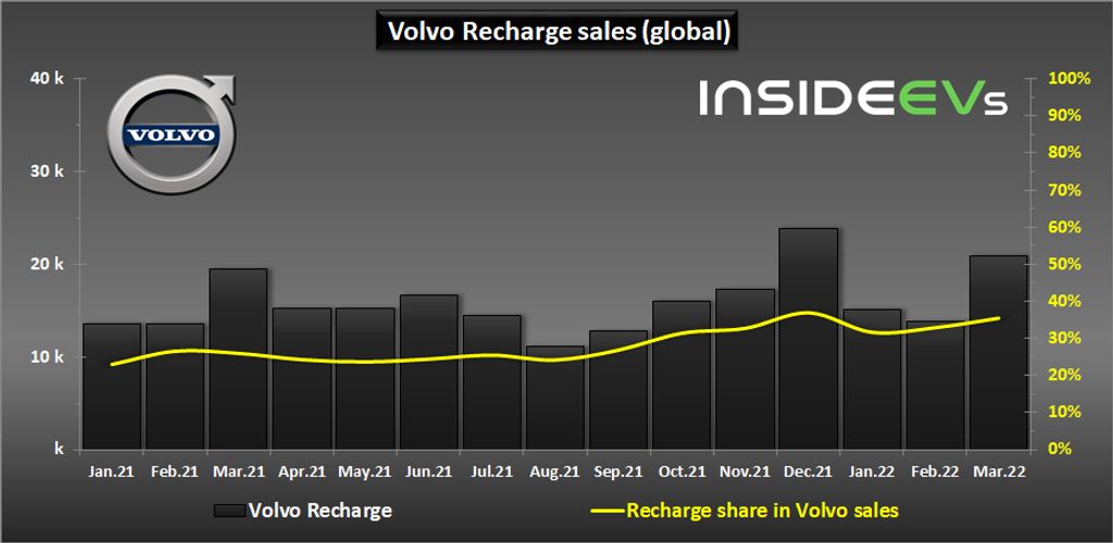 Europe remains the largest market for Volvo plug-ins. In Q1, the company sold 34,110 plug-ins in Europe (down 5%), which is 72% of all Volvo plug-ins globally, and 40.9% of the total Volvo volume in Europe.