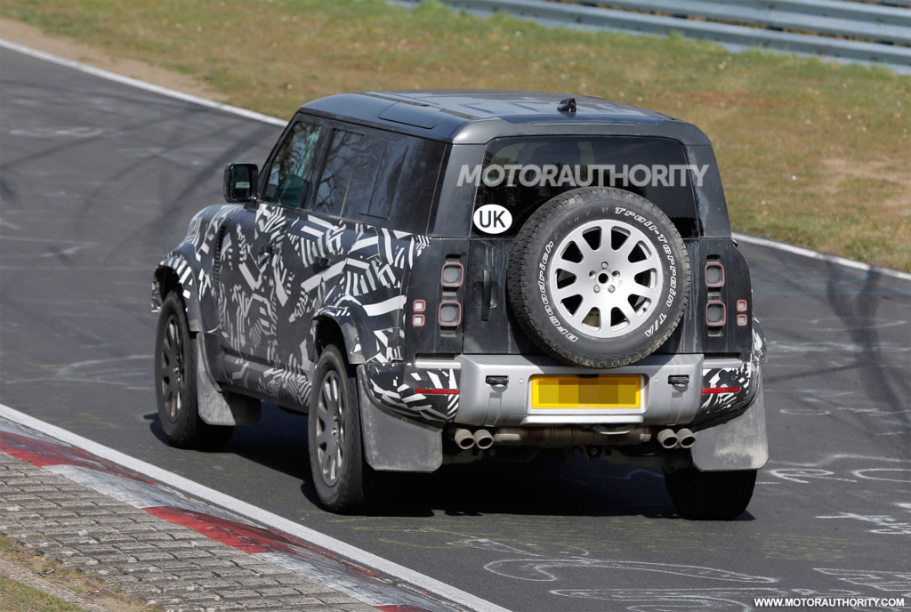 It isn’t clear what engine is under the hood. The Defender already offers Jaguar Land Rover’s 5.0-liter supercharged V-8, rated at 518 hp. However, Land Rover has also started offering a BMW-sourced 4.4-liter twin-turbocharged V-8 in the Range Rover, rated at 523 hp.