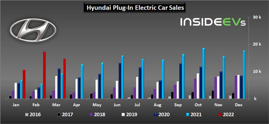 In such circumstances, Hyundai‘s plug-in electric car wholesale sales (closely related to production) increased to *14,693 (up 58% year-over-year), which is about 4.7% of the total volume.