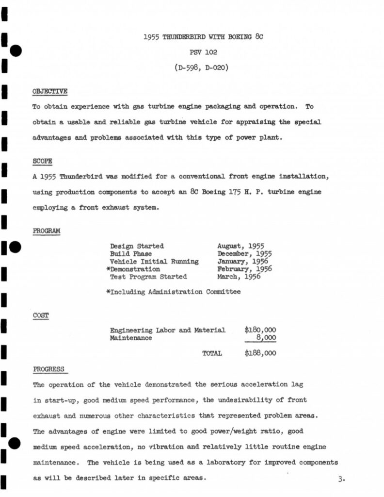 The project began in August 1955 and the car was ready for testing in March 1956. The goal of the project was “to obtain experience with gas turbine engine packaging and operation,” according to the testing notes. Ford also sought to learn “the special advantages and problems associated with this type of powerplant.”