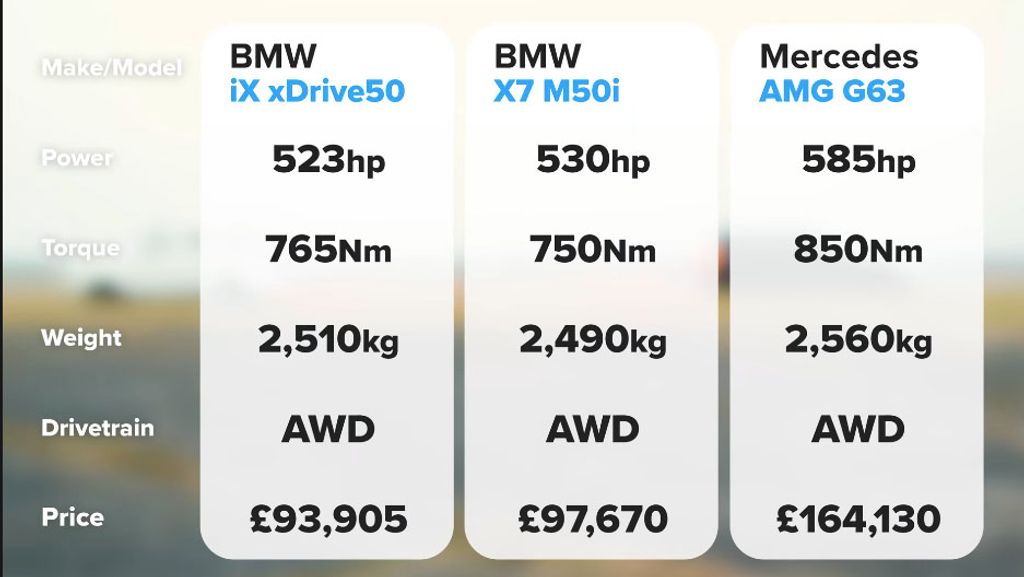 Many factors can affect the result of a tug of war between two vehicles – traction and power are the two most important, but the systems that dedicated off-roaders have (low range, locking differentials, special low-grip modes) can also make a difference. You would therefore think the best tug-of-war machine between the 2022 Mercedes-Benz G63 AMG, a 2023 BMW iX xDrive 50 and a 2022 BMW X7 M50 would be the first contender.