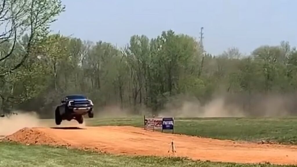 Footage of the incident posted on Instagram by the truck’s owner, who goes by Caz, shows the Raptor rapidly approaching a jump, catching a good amount of air, and landing on four wheels. “I aimed for 60 [mph] but it may have gotten beyond that as I wasn’t looking at the speedometer. Got a nice, smooth jump but unfortunately I landed a perfect pancake; all four wheels at the same time,” he told The Drive.