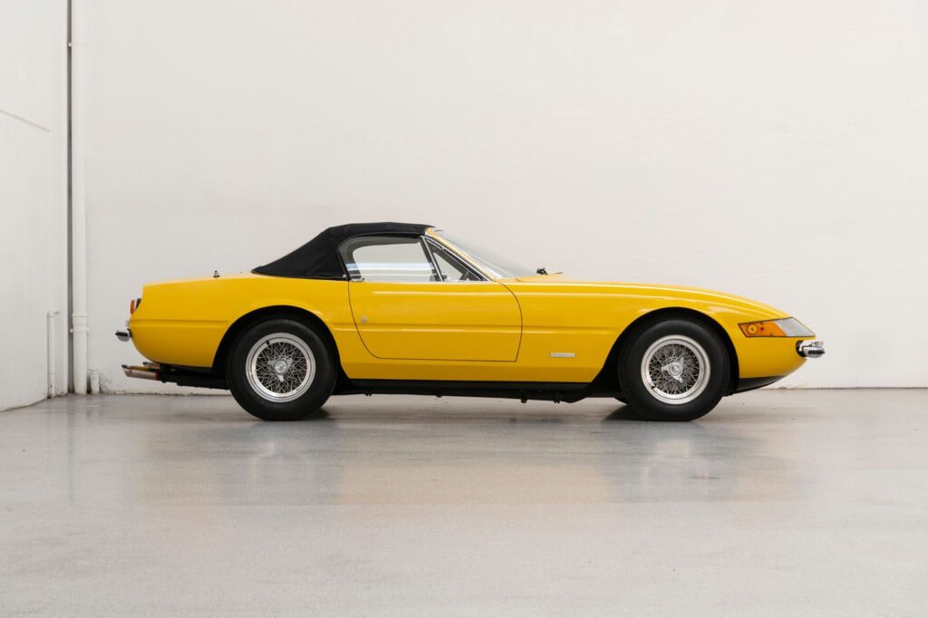 Chassis “16839” is the 90th example of that 122-car cohort, and the 65th of 96 examples that were destined to be sold in the United States. Finished in Giallo Fly over Pelle Nera Vaumol leather, the car is thought to be one of just 16 U.S. examples to feature the classic combination, with air conditioning and a desirable Becker radio adding to the Daytona’s appeal.
