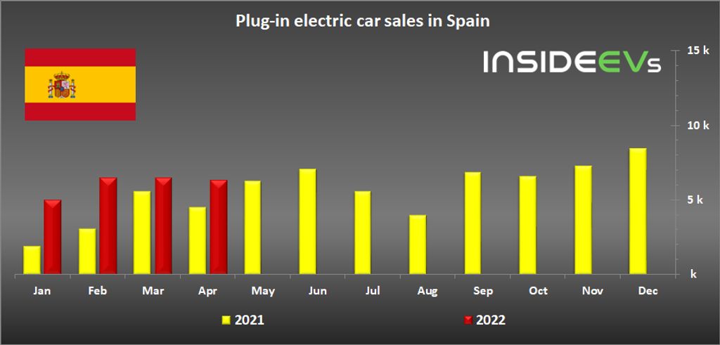 Despite that, plug-in electric car sales in Spain continue to expand at a fast rate. In April, some 6,365 new plug-in cars were registered (up 41% year-over-year), which is 9% of the total.