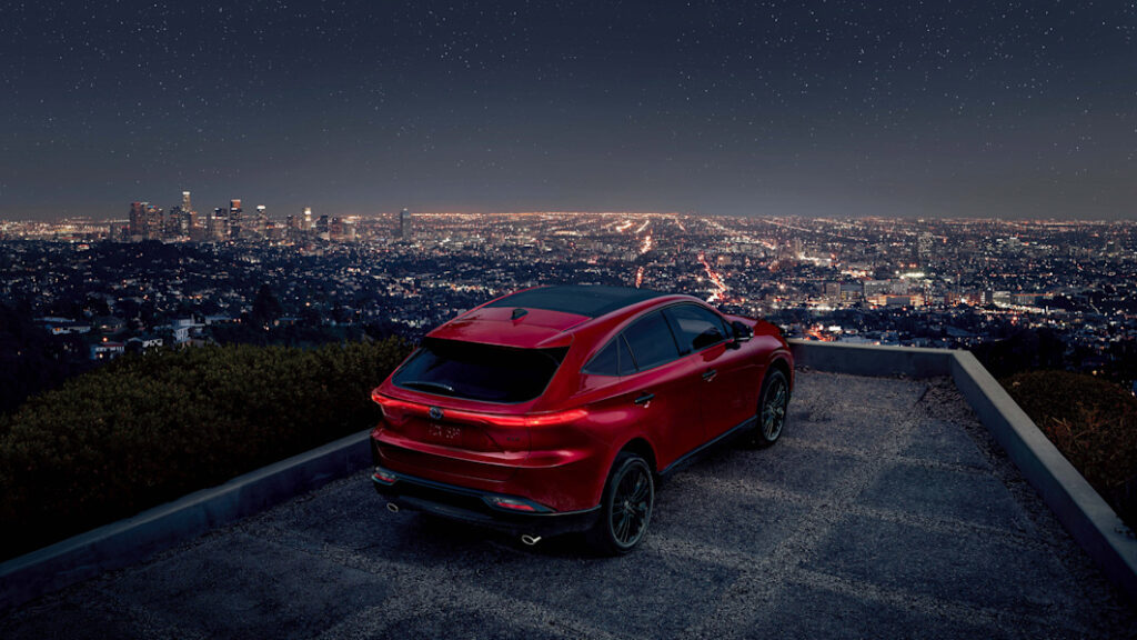 For those here for the black trim, the Venza Nightshade does not disappoint. There’s a new acrylic front grille trim, while lower bumpers front and rear feature smoked chrome moldings. Gloss black adorns the hybrid crossover’s side mirror caps, door handles, sharkfin antenna and rocker panels as well. Black roof rails are available too.