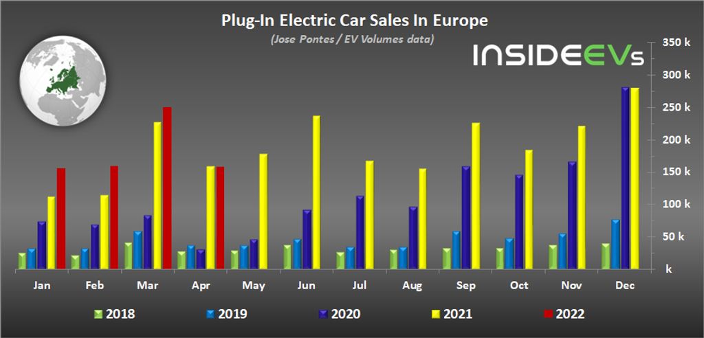 According to EV Volumes’ data, shared by Jose Pontes, roughly 158,600 new passenger plug-in cars were registered in Europe last month, which is 1% less than a year ago.