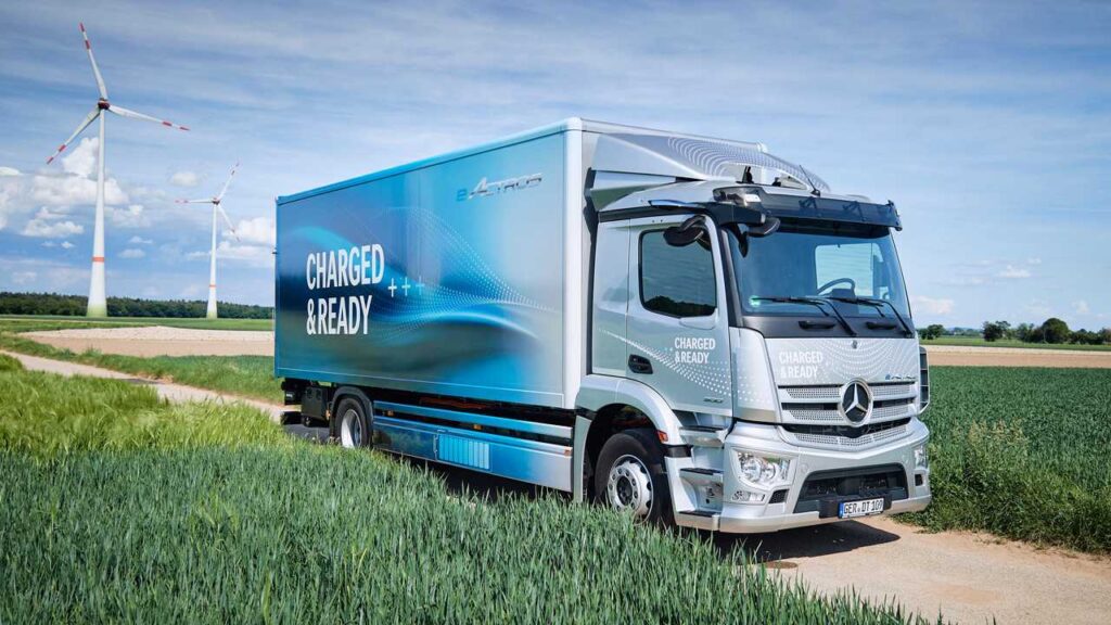 Globally, the German group is also electrifying the Mitsubishi Fuso brand (Fuso eCanter) and Freightliner (Freightliner eCascadia), as well as its bus manufacturers (Mercedes-Benz Buses in Europe and Thomas Built Buses in North America, plus an investment in Proterra in 2018).