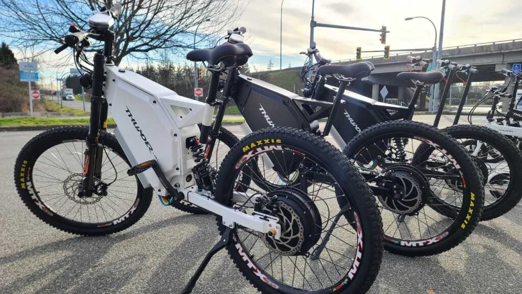 Richmond E-Bike is a Canadian company that develops a variety of micromobility vehicles, including electric bikes, trikes, and scooters. Thunder motorcycles are available in a number of sizes and styles to suit a multitude of uses. The Thunder X-Treme Custom E-Bike is one of them, a rugged, powerful electric mountain bike with an aggressive, race-inspired design.