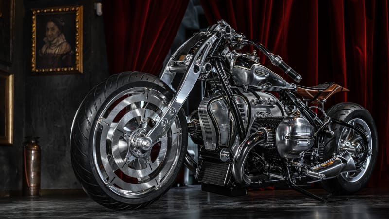 It doesn’t sound like Radaelli made mechanical changes, so power comes from a 1.8-liter air-cooled flat-twin rated at 90 horsepower and 111 pound-feet of torque. It spins the rear wheel via an open driveshaft, which is a cool and unusual feature — most modern motorcycles are fitted with a chain or a belt. BMW notes that Radaelli’s modifications lower the R 18’s weight from 760 pounds to around 562.