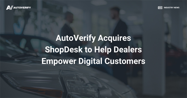 AutoVerify announced the acquisition of ShopDesk. This is the next step in building out the AutoVerify strategy that provides dealers with an end-to-end solution to connect and transact with digital customers looking to research and purchase a vehicle from anywhere they choose.