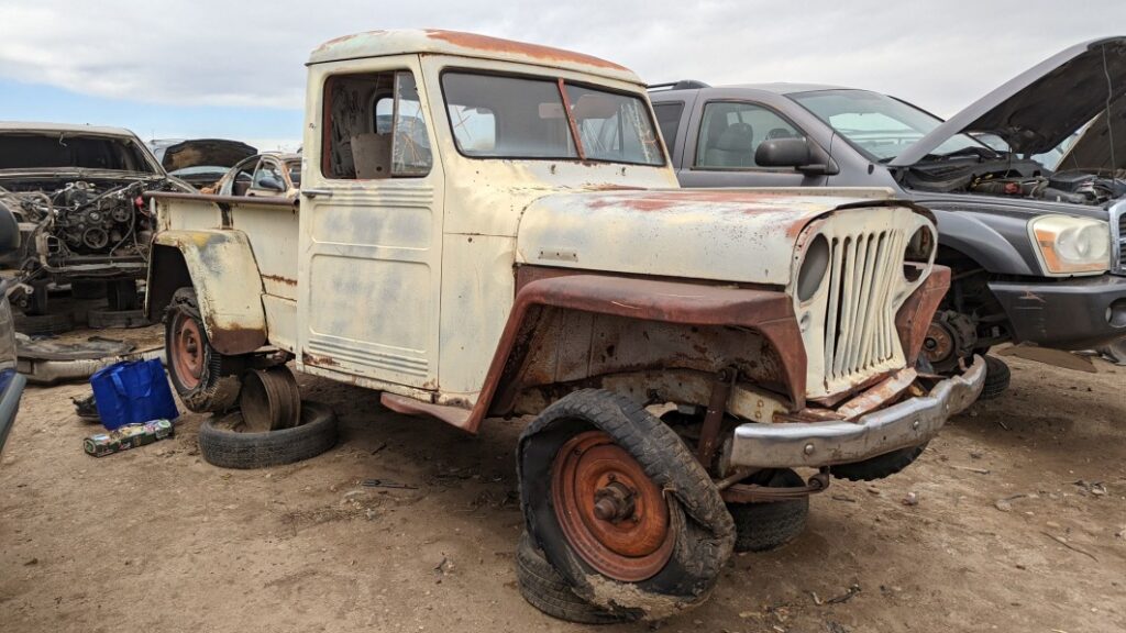 After building hundreds of thousands of examples of the original Jeep during World War II, Willys-Overland Motors needed to hustle to design and build machines that civilians (other than farmers) would want to buy. Rather than resume production of prewar Willys cars, the company hired soon-to-be-legendary designer Brooks Stevens to take its military vehicle designs and make something a bit more civilized. The result was the Willys-Overland Jeep Station Wagon, which looked stylish despite its flat stamped body panels, making its debut for the 1946 model year. A year later, a pickup version known as the “Jeep” Truck (don’t laugh; Toyota called the Hilux the Toyota Truck here for many years, and the Jeep designation was in quotes because Willys-Overland didn’t get exclusive rights to the Jeep trademark until 1950) appeared. Today’s Junkyard Gem is one of those early Trucks, found in a self-service yard between Denver and Cheyenne.