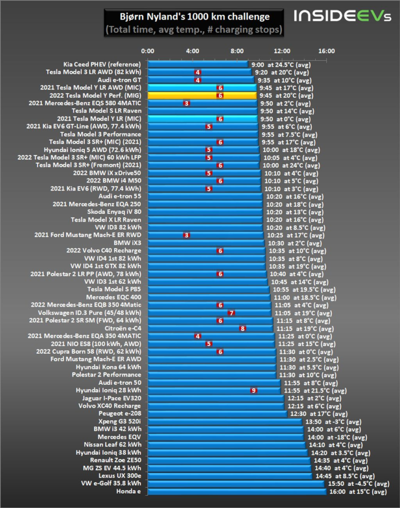 The 1,000 km challenge is a unique test, which expands our empirical knowledge about EVs and gives us glimpses of what is physically possible by an experienced driver in a country with dense DC fast charging infrastructure.