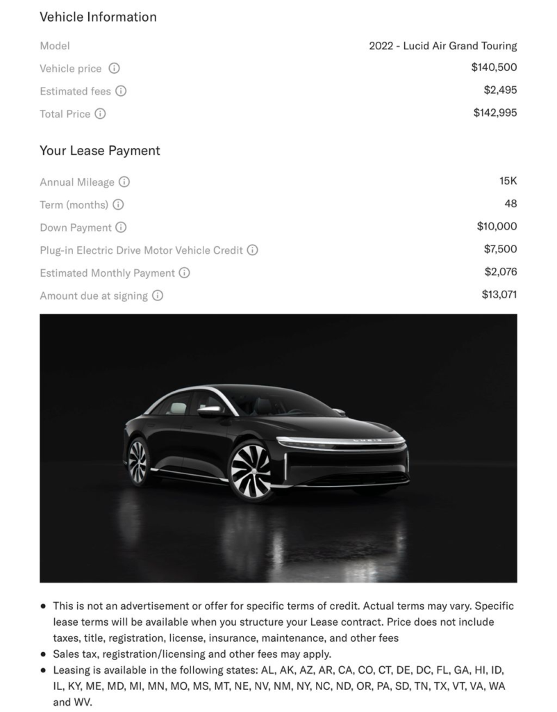 Fast-forward to the present, and Lucid Insider Blog reportedly spotted leaked screenshots from the new Lucid Financial Services leasing calculator, which reveal how much it will cost some shoppers to lease the pricey Lucid Air Grand Touring model.