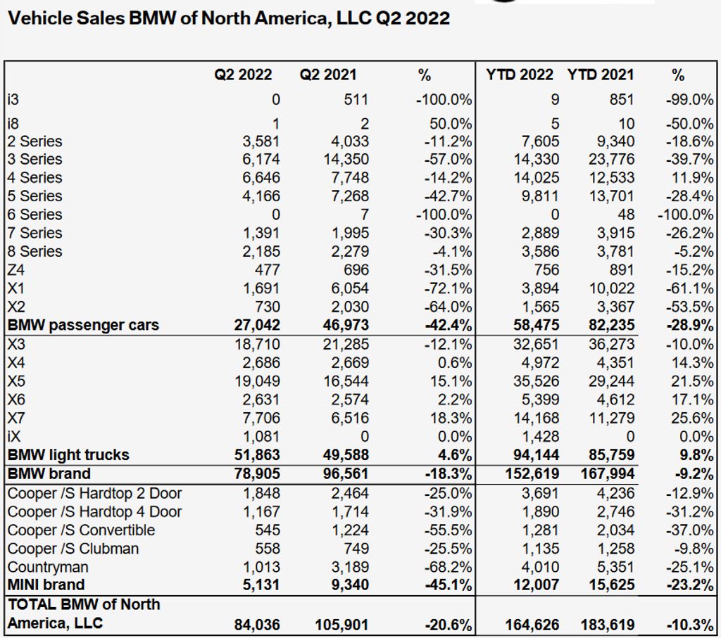 The BMW Group (BMW and MINI) is experiencing some difficult times in the US right now, as its vehicle deliveries decreased 20.6% year-over-year in Q2, to 84,036.