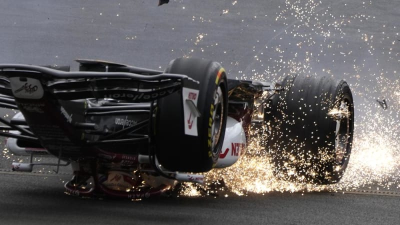 The crash at Silverstone brought the race to an immediate halt after the car flipped and slid upside-down across the gravel and over a tire wall into the retaining fence. The car was skidding on the halo, a frontal cockpit protection device, with Zhou’s helmet frighteningly close to the track surface. Then it went airborne.