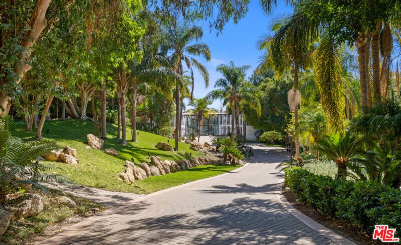 An oceanfront villa and tropical resort compound, this remarkable architectural estate commands gorgeous ocean views from an ultra-private bluff above Paradise Cove. The long gated drive meanders among trees, past two tree houses, tennis court and pavilion, subterranean garage with room for eight or more vehicles, and enormous mirrored gym to arrive at huge motor court between the home’s wide, backswept wings. The main floor west wing has another powder room, an en-suite bedroom with a private balcony, and an en-suite office/bedroom that opens to an ocean-view wraparound balcony. The light-filled upper floor is home to a sumptuous owner’s suite, two additional en-suite bedrooms, and one of the apartments. Ocean-view owner’s suite has prow shaped sitting area, wraparound floor-to-ceiling windows, and balcony, gorgeous bath with dual fixtures and a 15-head shower, plus an amazing closet with two