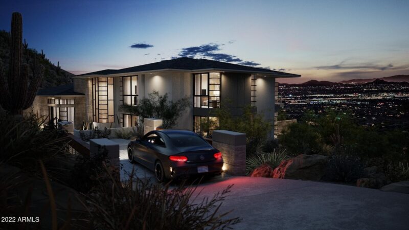 This home is located in the prestigious and exclusive Silverleaf community of Scottsdale and is designed by famed architect Bing Hu. In the Upper Canyon of the community, it’s situated on the high foothills of the McDowell Mountains and provides sweeping city, mountain, and valley views.