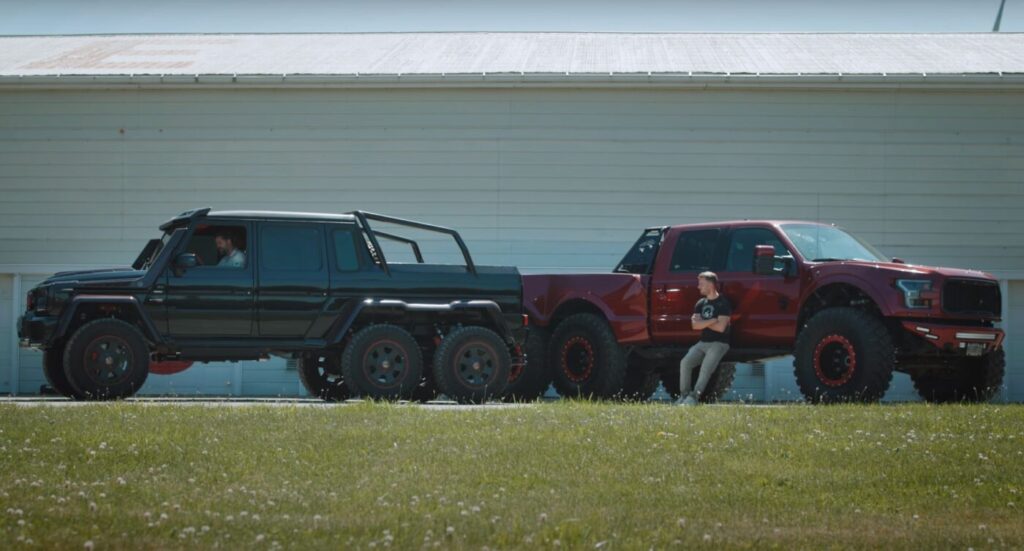 However, the YouTube channel Throttle House found one, and it’s a custom “MegaRaptor” truck that takes an already customized Ford F-350 MegaRaptor truck by MegaRexx and makes a gigantic 6-wheeled monster, complete with up to 1000 horsepower and the formidable sound of its diesel engine, and that car cost its owner roughly over $300,000 to build. Both of these cars can only be described as unnecessary and they look completely out of place in the Canadian towns they drive through, and Throttle House makes them look even more out of place when they are put together to take on the drag strip. Once there, both trucks are impressively quick as their massive proportions are matched by even more massive performance. The Brabus 6×6 won, although the MegaRaptor wasn’t far behind, reaching impressive speeds in the process. Leave it to the automotive industry to constantly test how far it can go over the top.