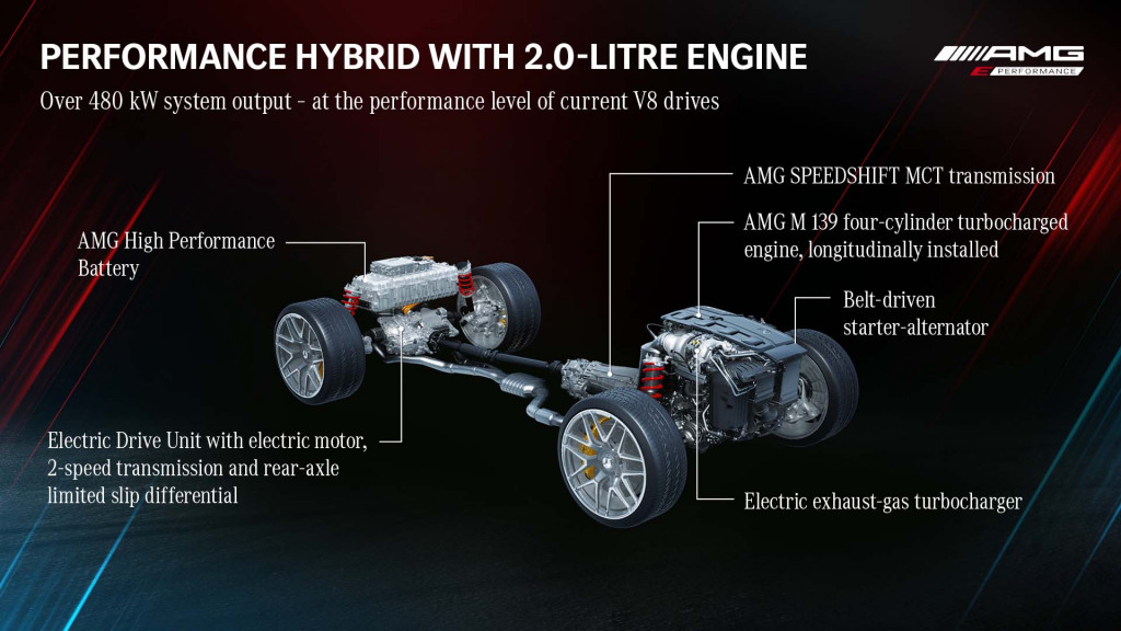 On top of all this, there will be a much more powerful motor (up to 201 hp) at the rear axle to take combined output to a maximum 643 hp. This rear motor will be mated to its own 2-speed transmission. A battery of 6.1 kilowatt-hours of capacity will ensure a small electric range will be possible. A similar setup, albeit with a V-8 engine, features in the 2023 GT 63S E Performance 4-Door Coupe.