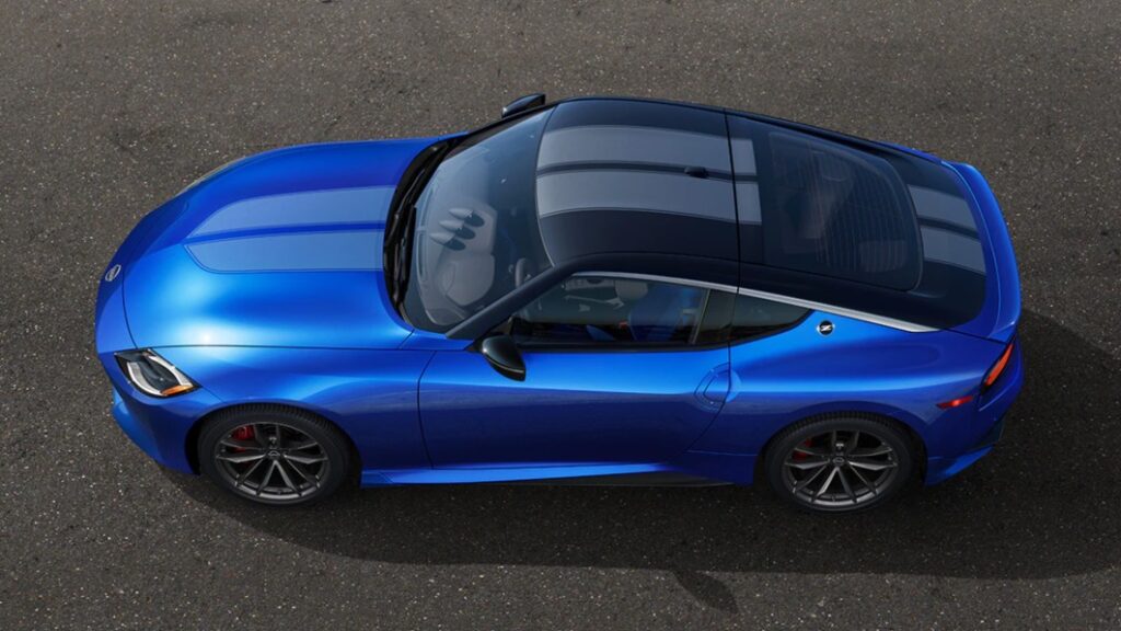 The color palette has some nice hues. Ikazuchi Yellow has become the Z’s signature color and is the only choice for the Proto spec, but you can choose it on any Z. It, Seiran Blue, and Everest White are premium colors that require an additional $1,295. Passion red commands a $1,695 premium, while Boulder Gray and Brilliant Silver require only $895. All of those must be paired with a black roof, but three single-tone no-cost colors are available in Rosewood Metallic, Gun Metallic, and Black Diamond Pearl.