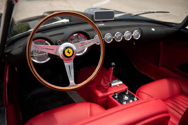 Two years later Skip McCabe was retained to conduct a comprehensive restoration, with final assembly supervised by the respected Butch Dennison. Among other measures, the coachwork was refinished in black and the interior was re-trimmed with rosso leather, the original factory color combination. In 2008, engine number 0963 GT was treated to a complete rebuild by Ferrari expert Patrick Ottis, and three years later the cabriolet was displayed at the Blackhawk Museum in Danville, California.
