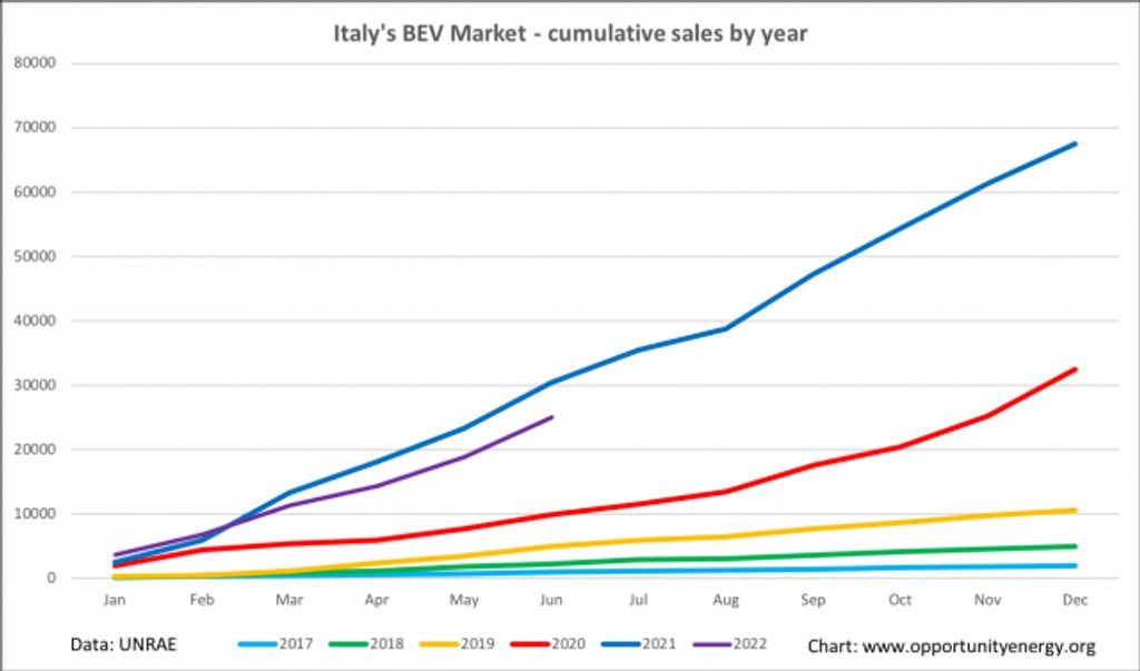 Italy’s auto market is at a crossroads. While most European markets continued seeing EV growth through the first six months of 2022, albeit in an overall subdued automotive economy, the Bel Paese was the victim of a self-inflicted wound, as the Italian government struggled for months before launching an overdue fiscal package to support low emission vehicles.