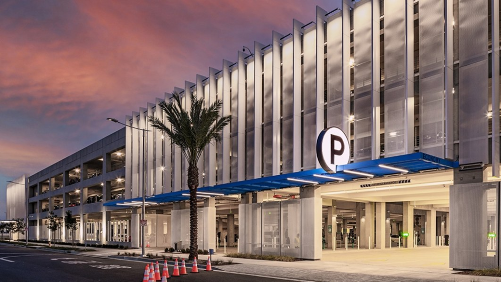 To lower its carbon footprint, the structure was built with low-energy lighting, low-flow plumbing fixtures, and it uses recycled water. There are also spaces specifically for low-emissions vehicles and those who carpool to the airport. Future upgrades for the parking structure include an Automated People Mover to shuttle visitors to the terminal, expected to enter operation next year.
